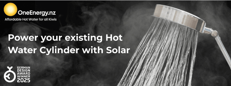 One Energy is a New Zealand company focused on making hot water heating more affordable and efficient using solar energy. This Hot Water solution uses your hot water cylinder as a giant battery and feeds 100% of your Solar Panel energy directly into your existing hot water cylinder. The hot water savings are instantaneous, and smaller households can eliminate nearly all mains energy consumption.